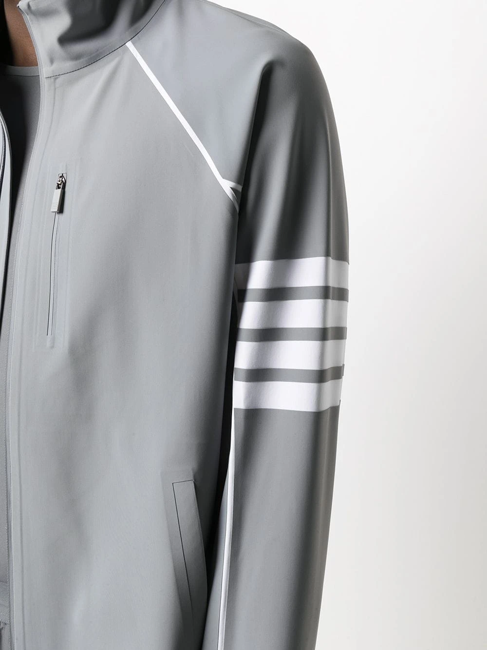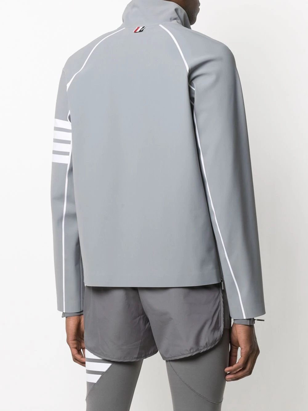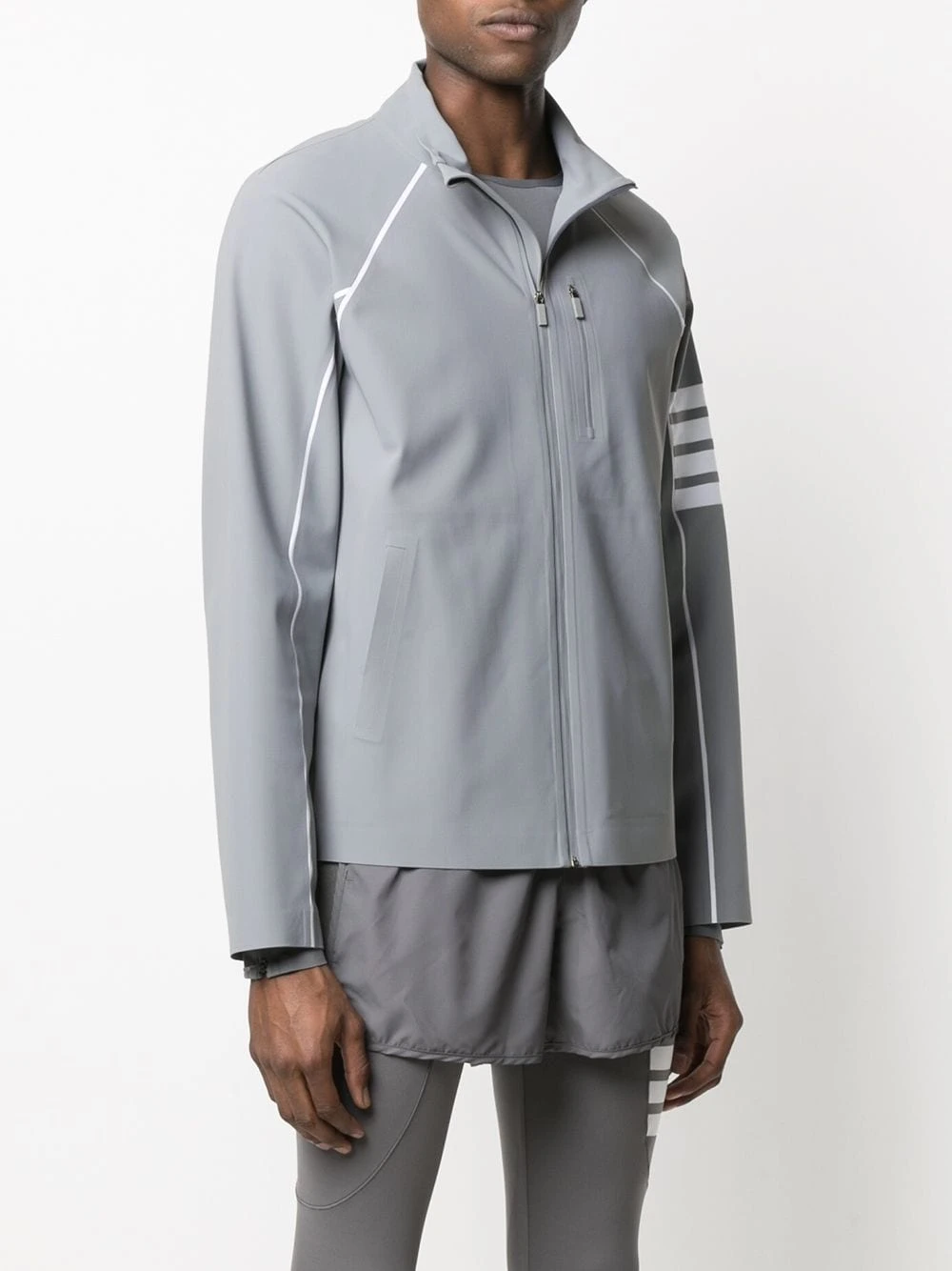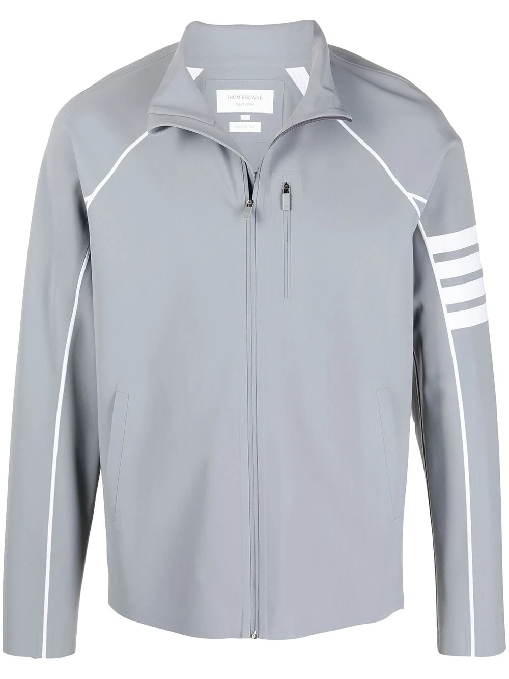 Let’s get physical. In a light grey hue with a 4-Bar motif to one side, this jacket from Thom Browne can take on everything and anything. Get sporty.