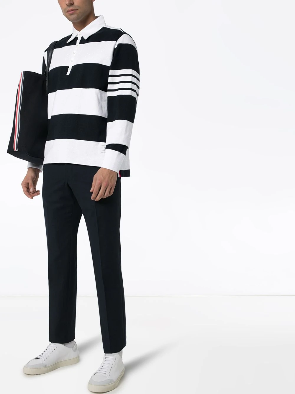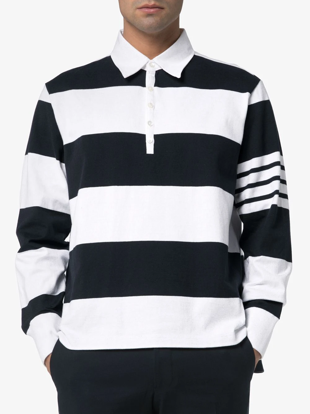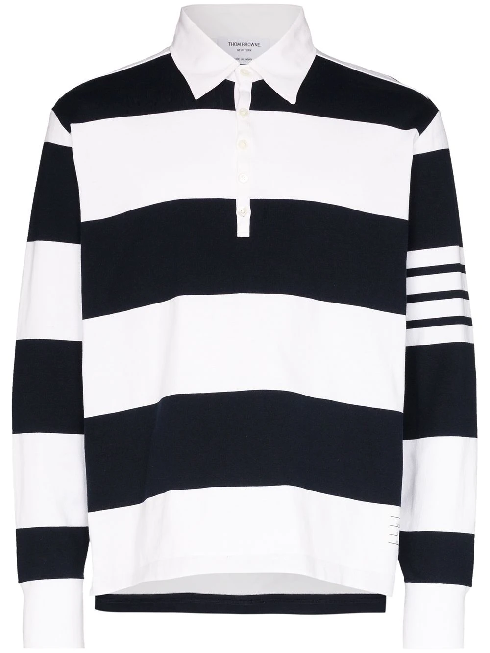 Thom Browne’s polo shirt instantly makes you think of traditional rugby styles – but cooler. It wouldn’t be complete without the brand’s 4-stripe pattern, would it? Earn your stripes and add it to your wish list. Featuring a button fastening, 4-stripe pattern and signature tri-colour striped trim.