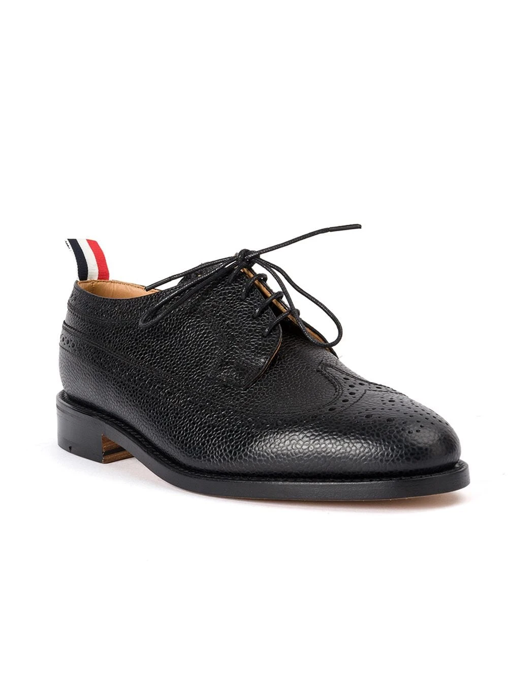 Heavily rooted in tailoring and menβs formalwear, Thom Browneβs eponymous label began in 2003 and has continued to find ways to innovate and refresh classic designs with each new season. A feminine version of a classic men’s shoe, these brogues come in a pebble textured leather and feature a rear pull tab with the label’s signature three stripes at the rear. This item fits small, please select half a size up.