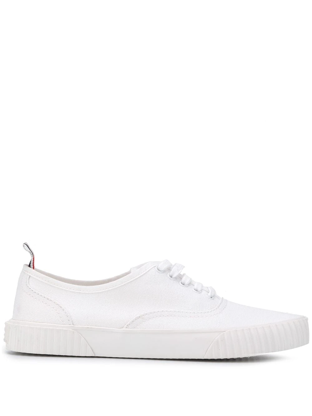 Some things are just perfect together β and you, your favourite jeans and the Heritage sneakers from Thom Browne are an impeccable example of that. Constructed from soft cotton, this pair sits on a flat rubber sole that will ensure all-day comfort. Itβs just meant to be.