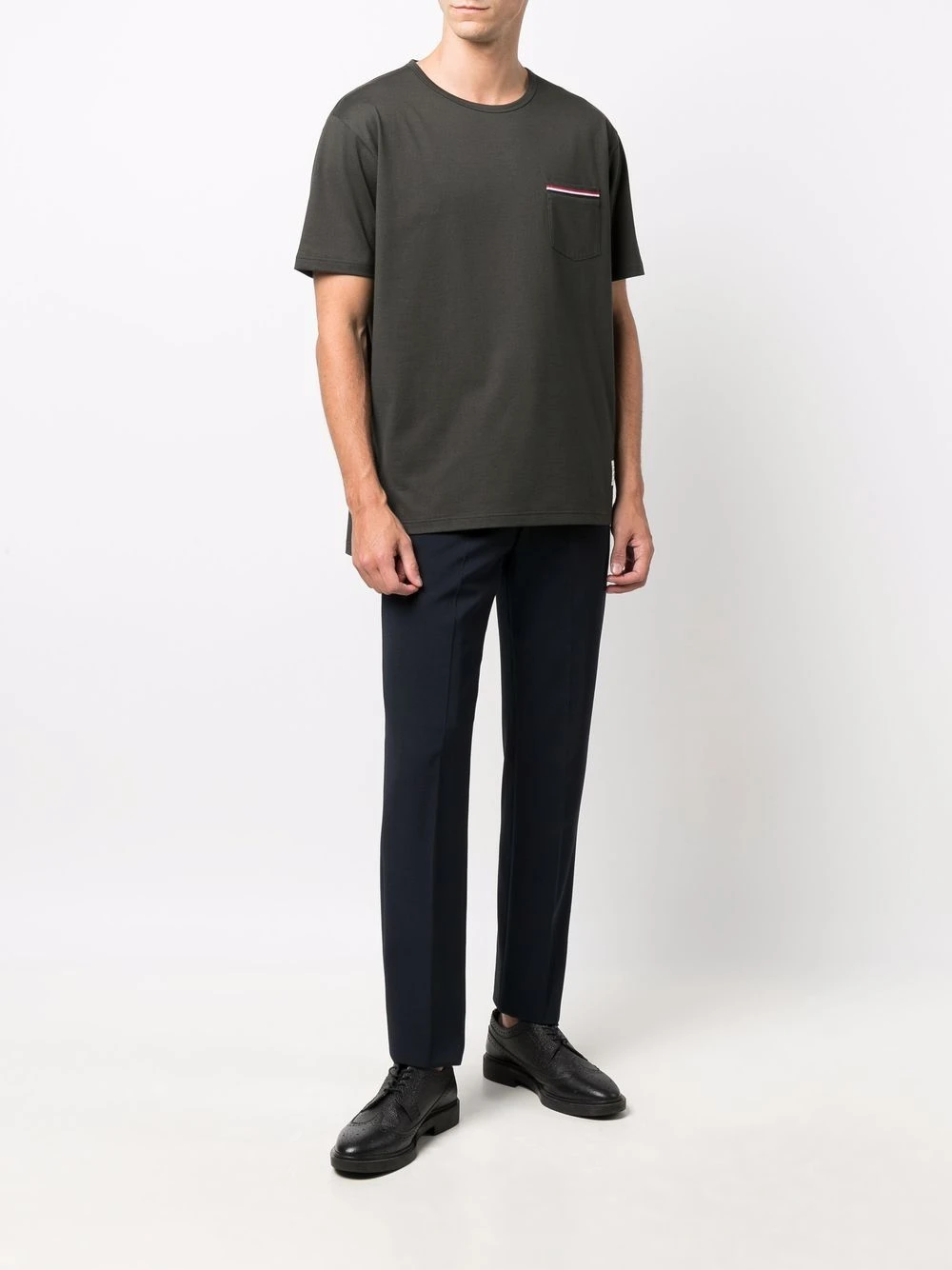 A classic with a Thom Browne twist. Finished with RWB stripe detailing, this T-shirt proves itself a refined casual staple.