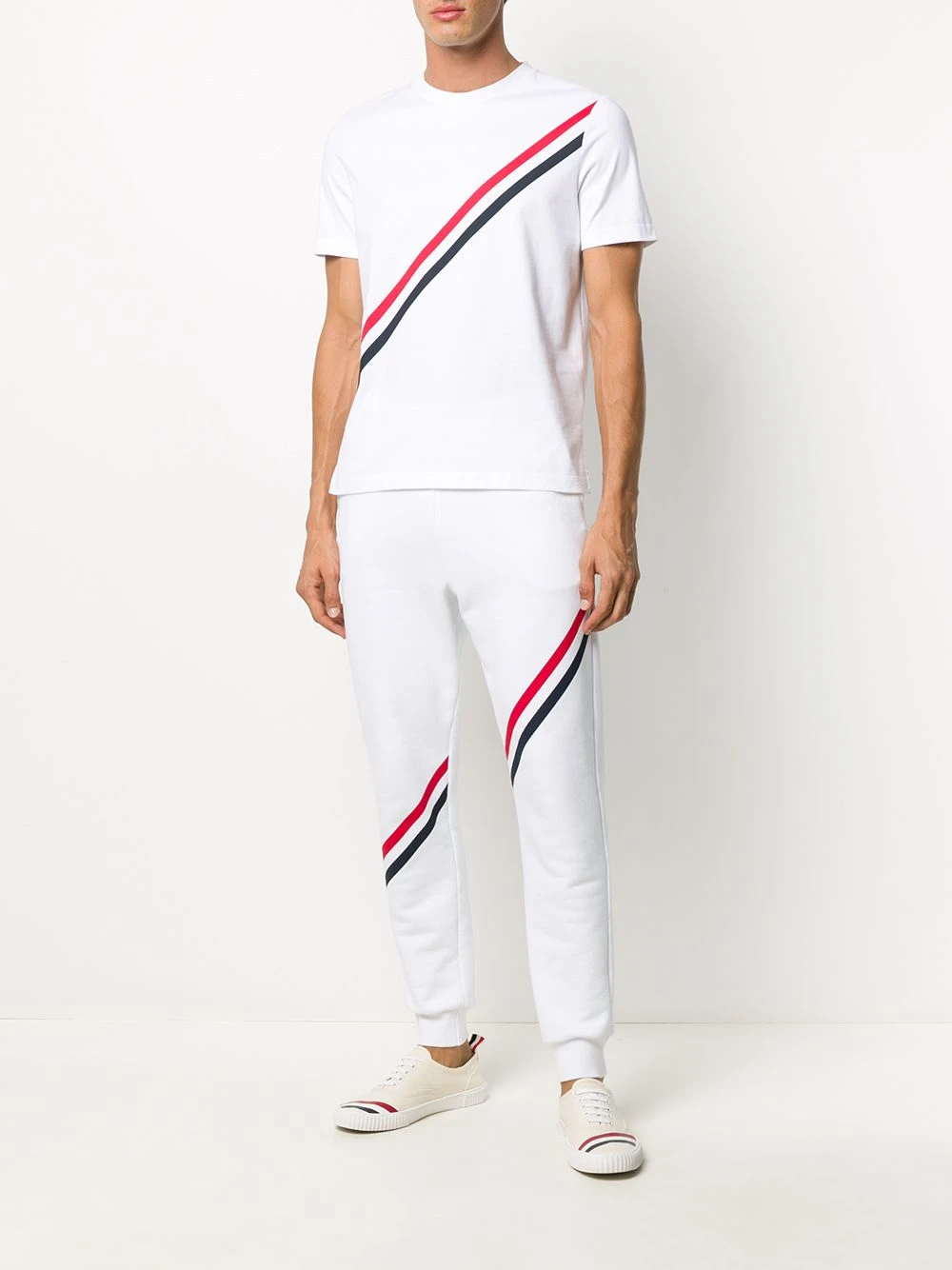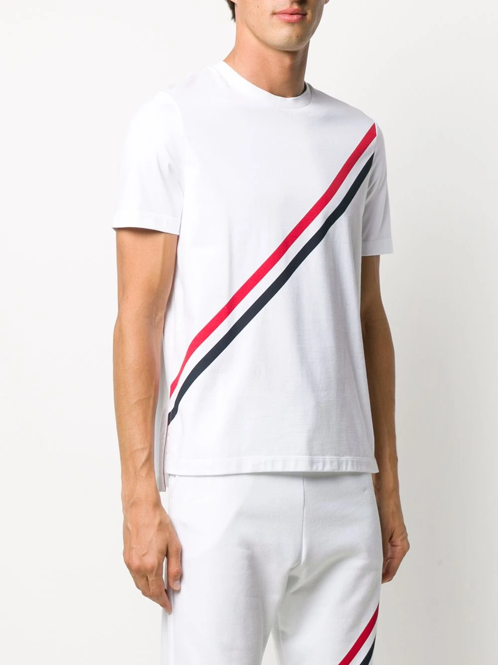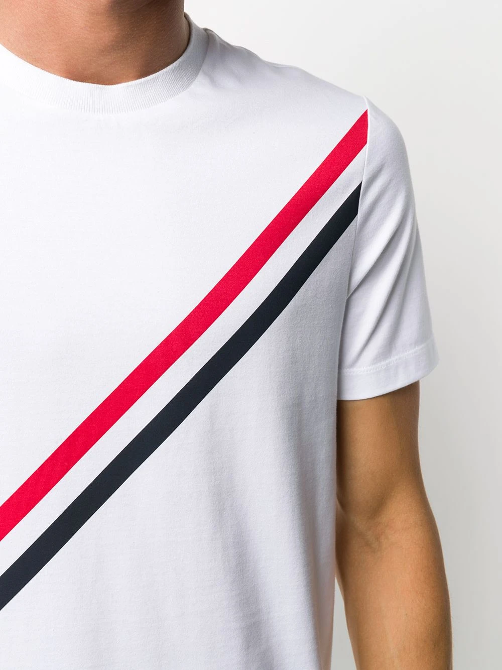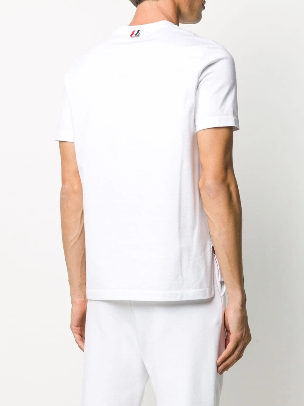 Laid-back style is right up your street. And that’s why you’ll want to make an impact in this RWB-stripe T-shirt from Thom Browne. It can’t wait to meet you. Featuring a round neck, short sleeves, a straight fit, a signature grosgrain loop tab and a RWB stripe.