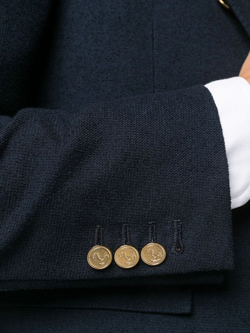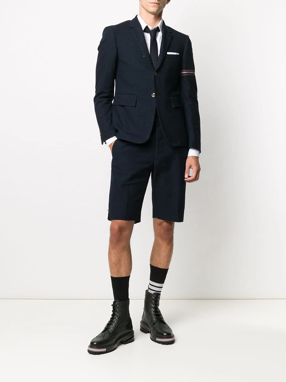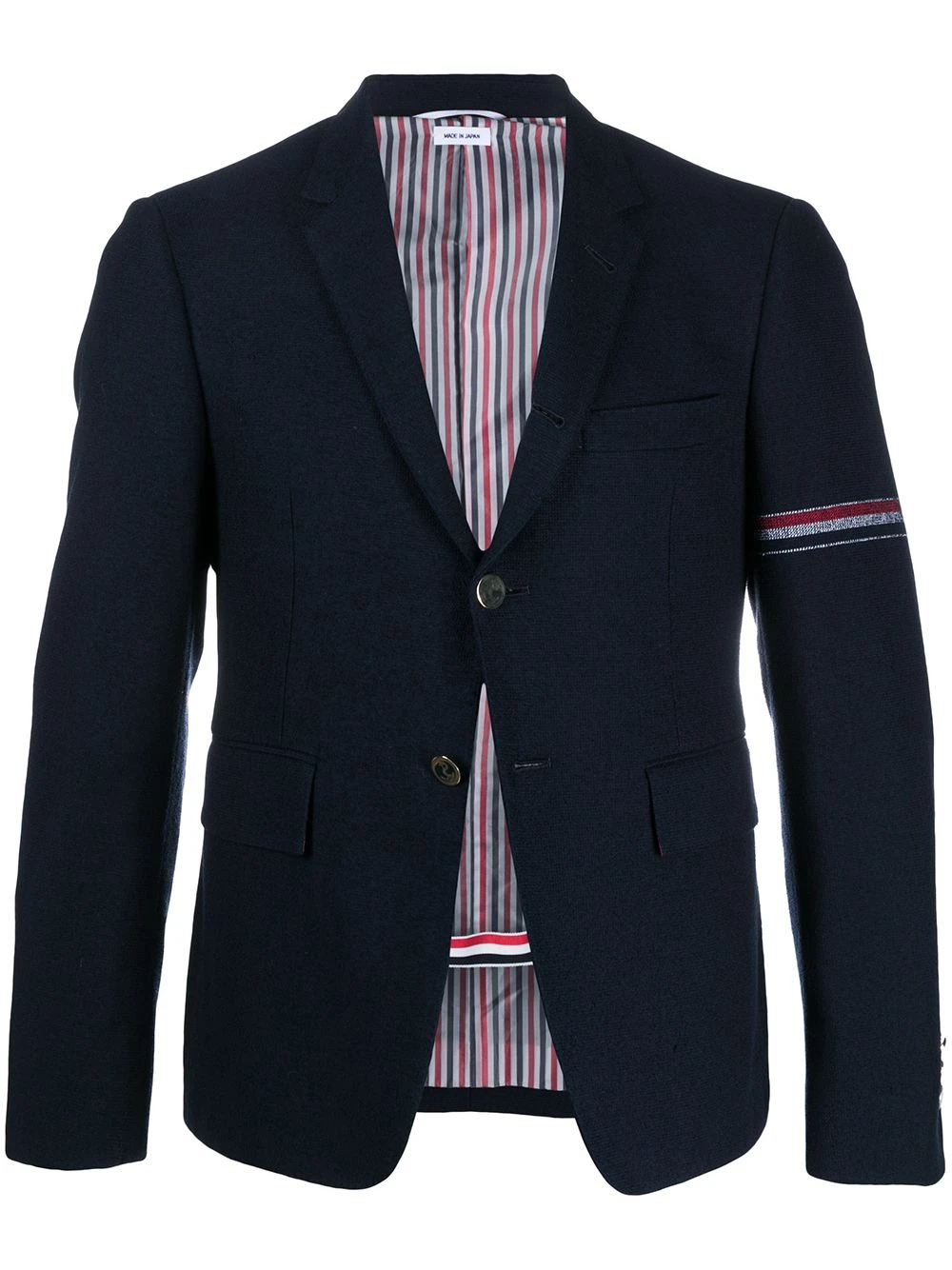 Versatile and comfortable, what else would you want? This engineered RWB blazer from Thom Browne makes dressing in the morning an easy feat. Even before your morning coffee.Β