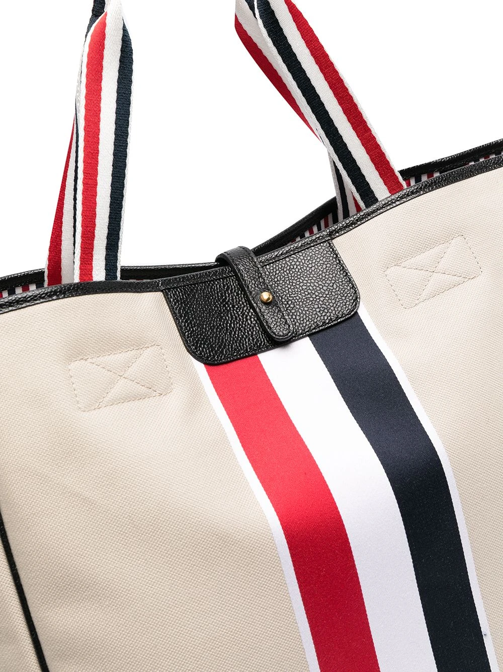 There’s plenty of space inside Thom Browne’s canvas tote bag – you won’t need to leave anything at home. It’s as practical as it is stylish, so go ahead and earn your fashion stripes.