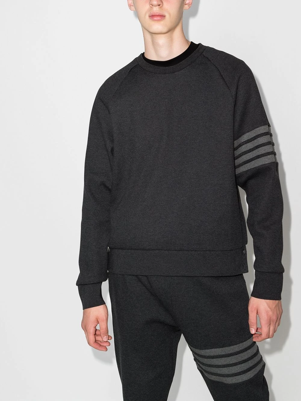 Famous for playing with collegiate undertones, Thom Browne presents this charcoal grey jumper. Detailed with long raglan sleeves, this piece is distinguished by the instantly recognisable 4-Bar stripe.