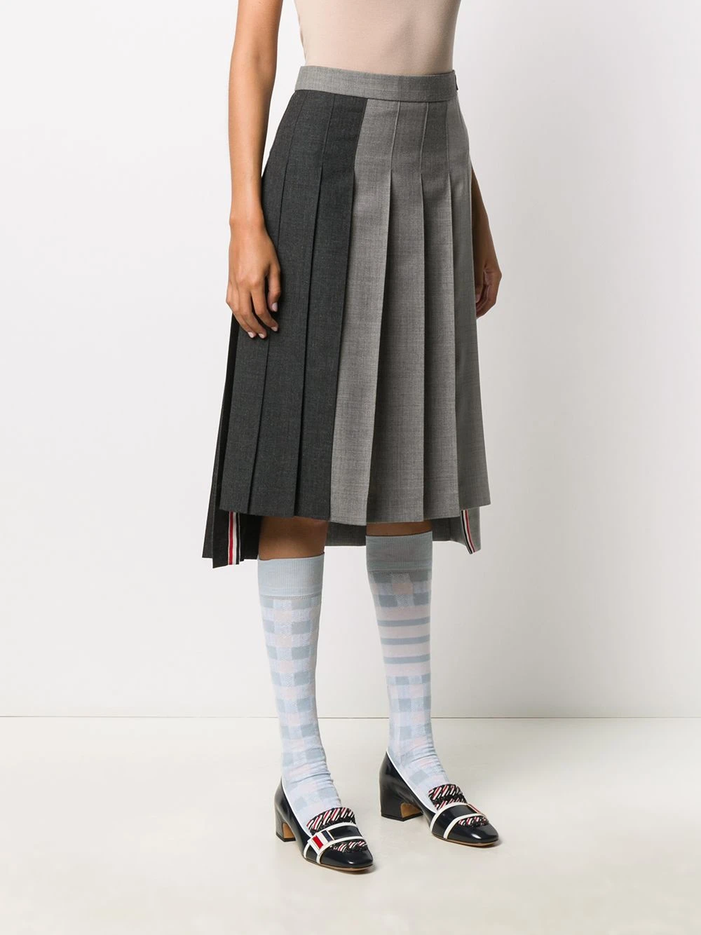 If your style was being up to the test, it would pass with flying colours. Ace impeccable styling with this grey wool pleated skirt from Thom Browne. Full marks for your new uniform.