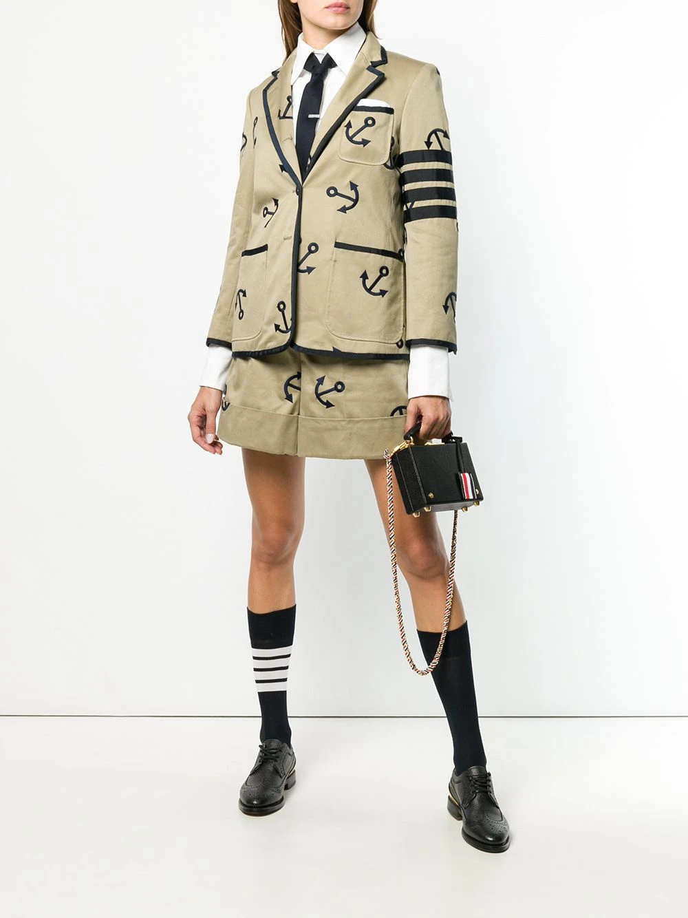 Carry your smallest essentials in style. This pebbled micro Attaché case from Thom Browne will be the piece you reach for every time you leave the house. And who could blame you? Featuring a pebbled leather texture, gold-tone hardware, a hinge closure, a flip-lock closure, a round top handle, an internal slip pocket, a RWB stripe, a detachable logo tag, a branded padlock detail and a RWB-detail chain strap.
