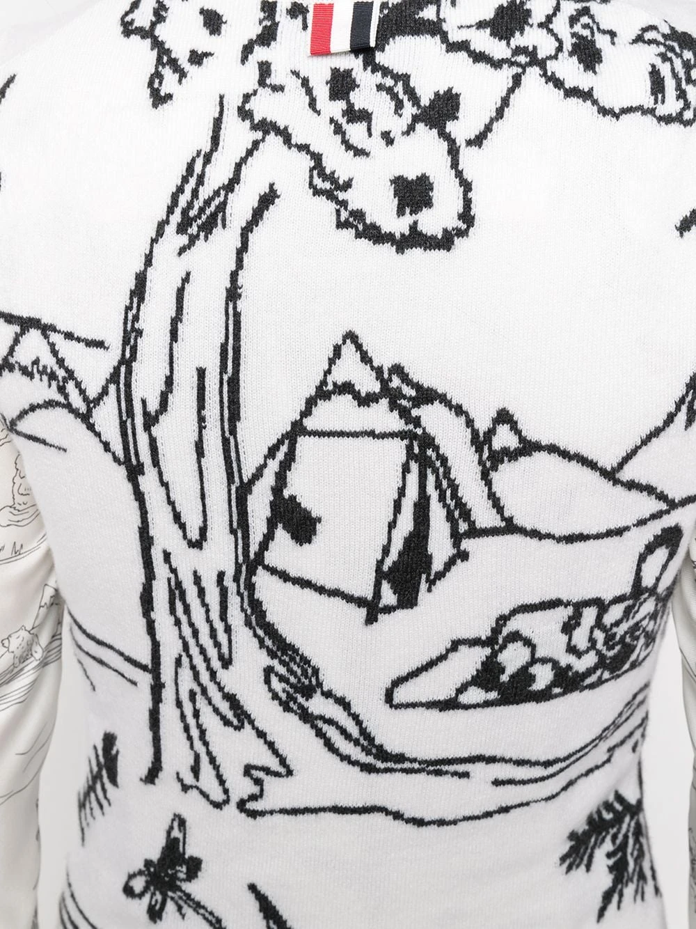Set your sights on an intarsia knit oasis. Thom Browne sets the scene with this knitted sleeveless sweater vest. It’s a wearable wonderland.