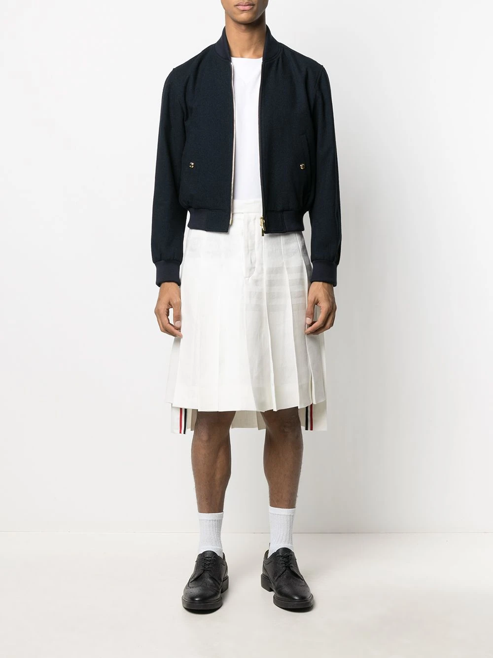 If there’s a piece that everyone should own, that piece is a bomber jacket. Go for a timeless version like this RWB stripe bomber jacket from Thom Browne. Timeless is key.