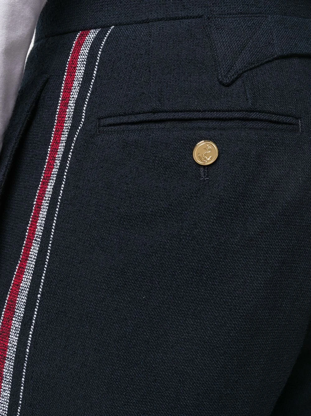Channel your inner schoolboy, in these navy shorts from Thom Browne. The expertly constructed shorts are intricately woven from a fine cotton-polyamide mix, all topped off with the brand’s signature RWB tricolor stripe detailing. And no homework in sight.