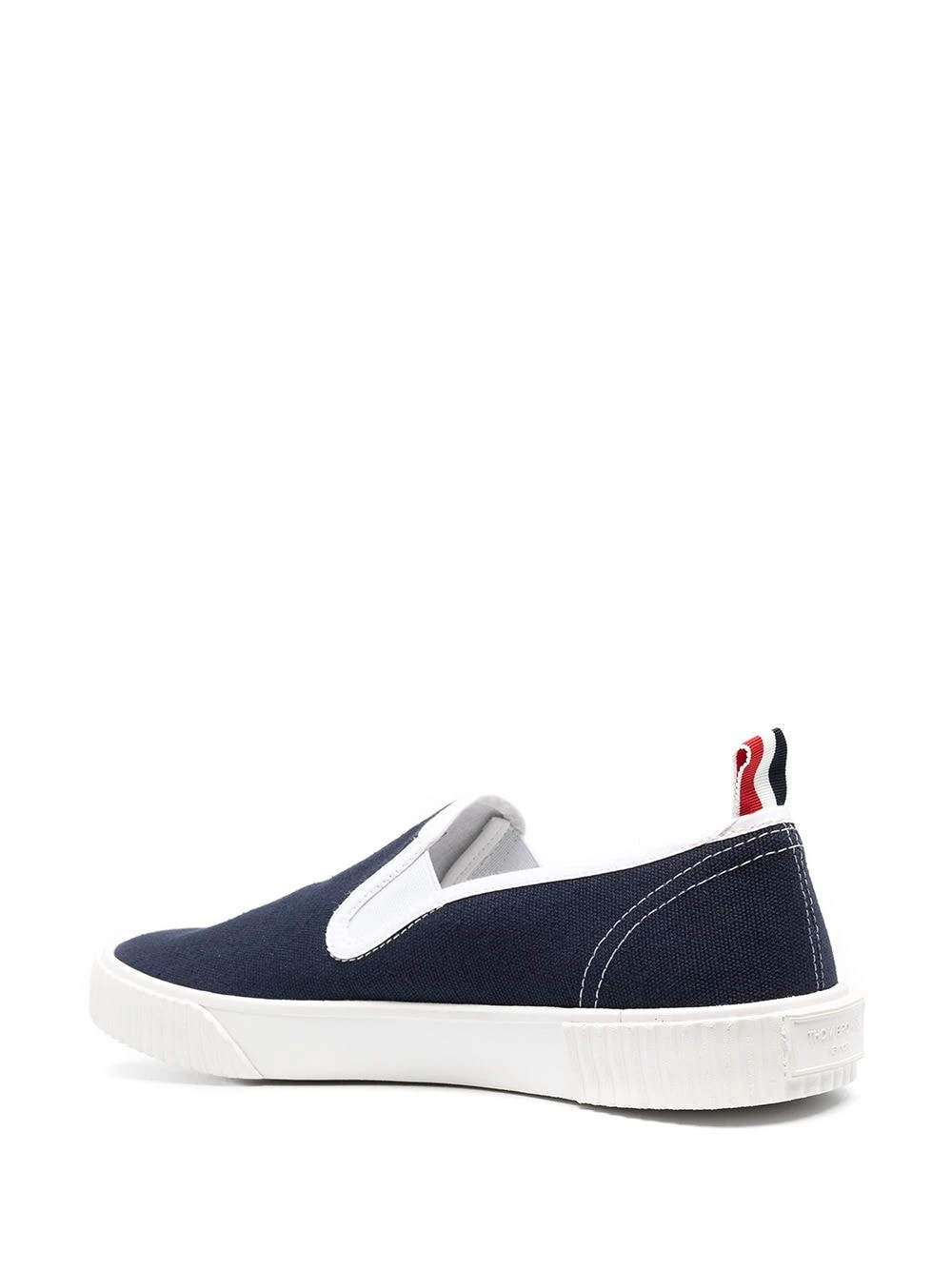 Slip into style, with these slip-on heritage trainers from Thom Browne. The transformative trainers feature a chunky rubber sole, round toe, logo pull-tab at the heel, elasticated side panels, with a logo patch to the side. You can thank us later.