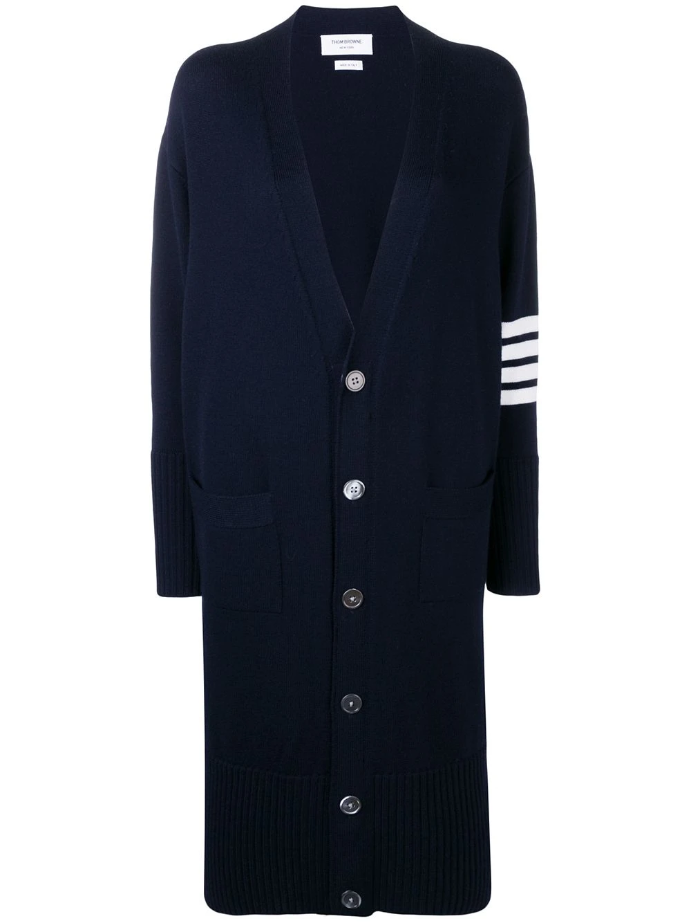 This 4-Bar stripe cardi-coat is all that you’ll want to pull on when the weather gets cooler. And who could blame you? This oversize Thom Browne piece gives knitwear a new lease of life.