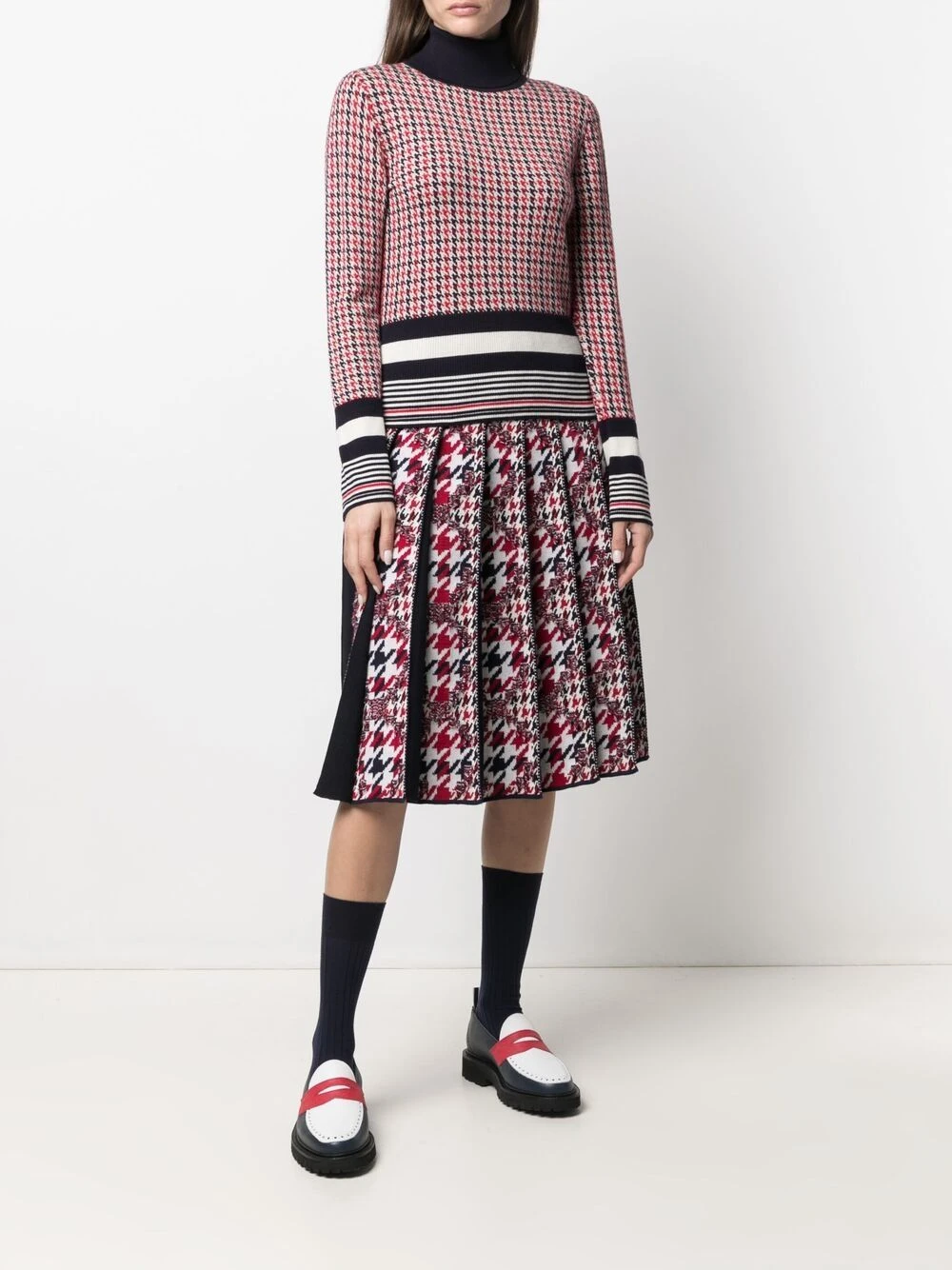 Great style? It’s as easy as one, two, three. All that you need to do is slip on this houndstooth-pattern skirt from Thom Browne.
