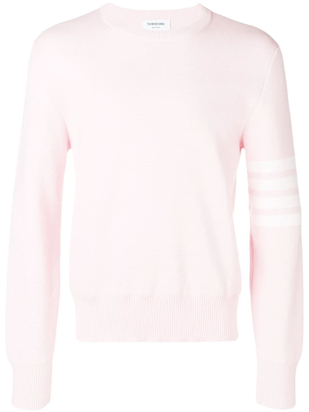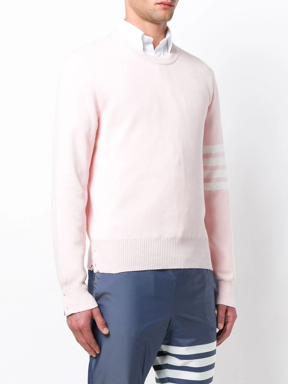 Keep cosy in comfort. You’re covered, with Thom Browne’s 4-Bar detail, long sleeve jumper. You’ve earnt your style stripes with this design.