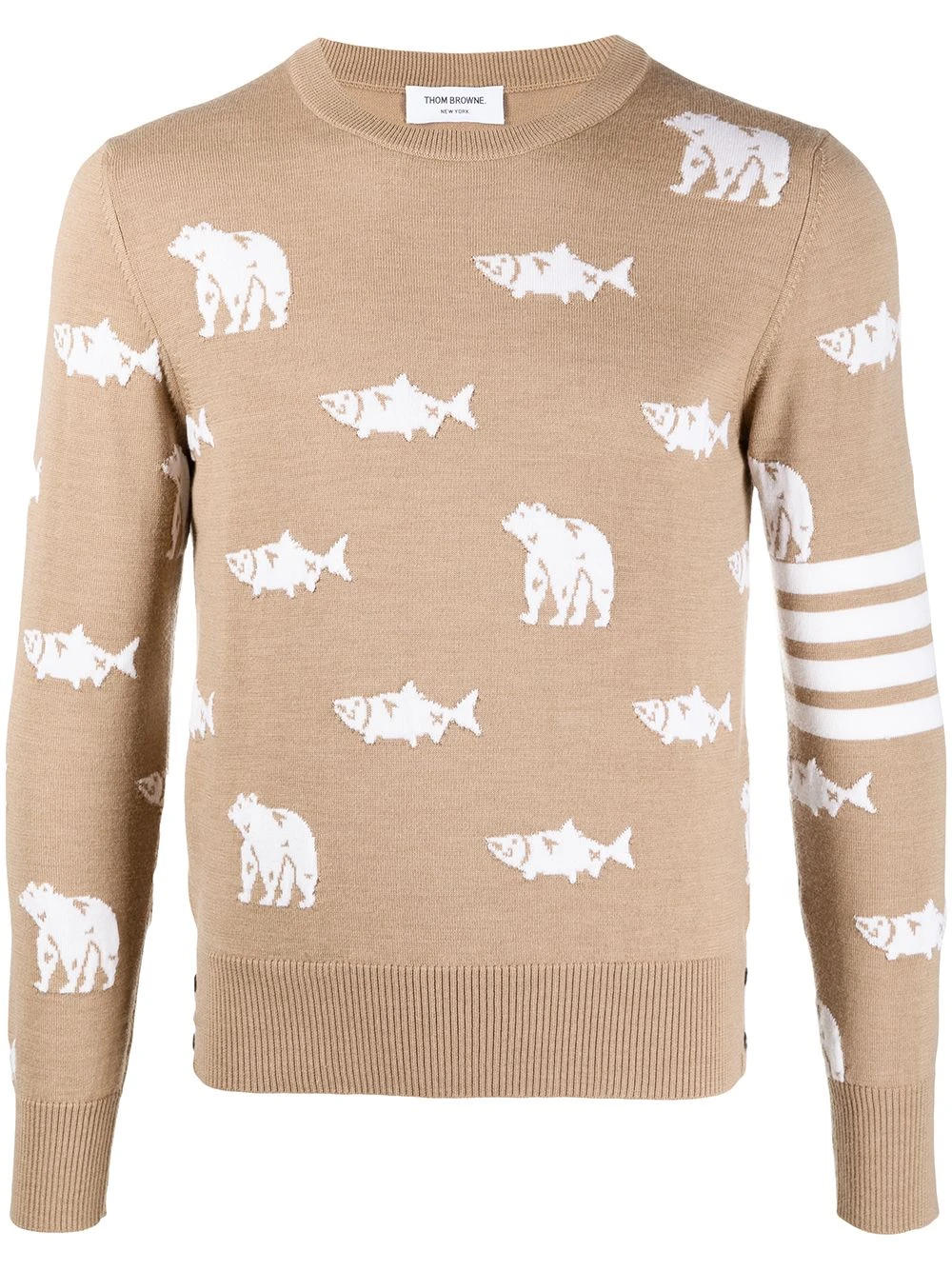 There’s plenty of fish in the sea, but there aren’t many cool jumpers like this one. Crafted from merino, this camel brown embroidered fish jumper will add a playful touch to your everyday looks while keeping you warm. Courtesy of Thom Browne.