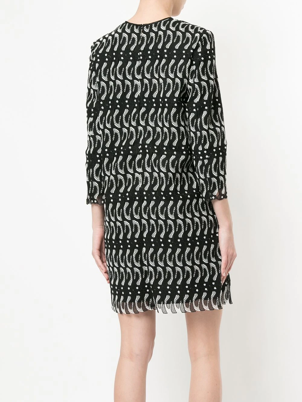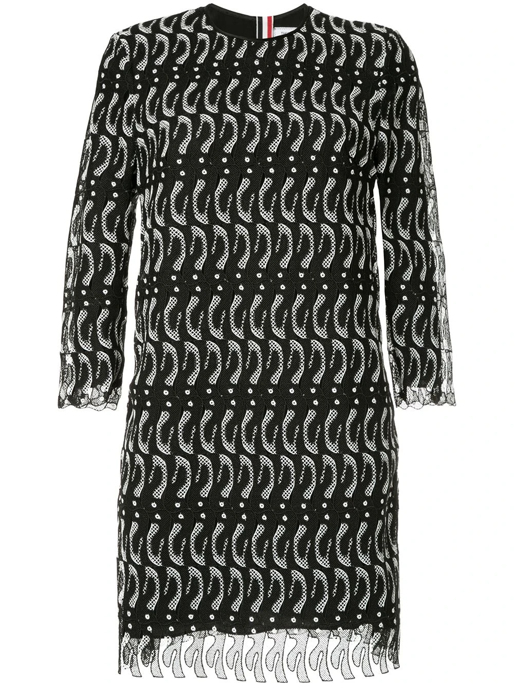 With a history in menβs formalwear, Thom Browne brings its tailoring expertise to the table when creating its womenβs collection, focusing on premium materials and expertly cut shapes. This black and white penguin lace dress features a round neck, three-quarter length sleeves, a short length and a concealed rear zip fastening.