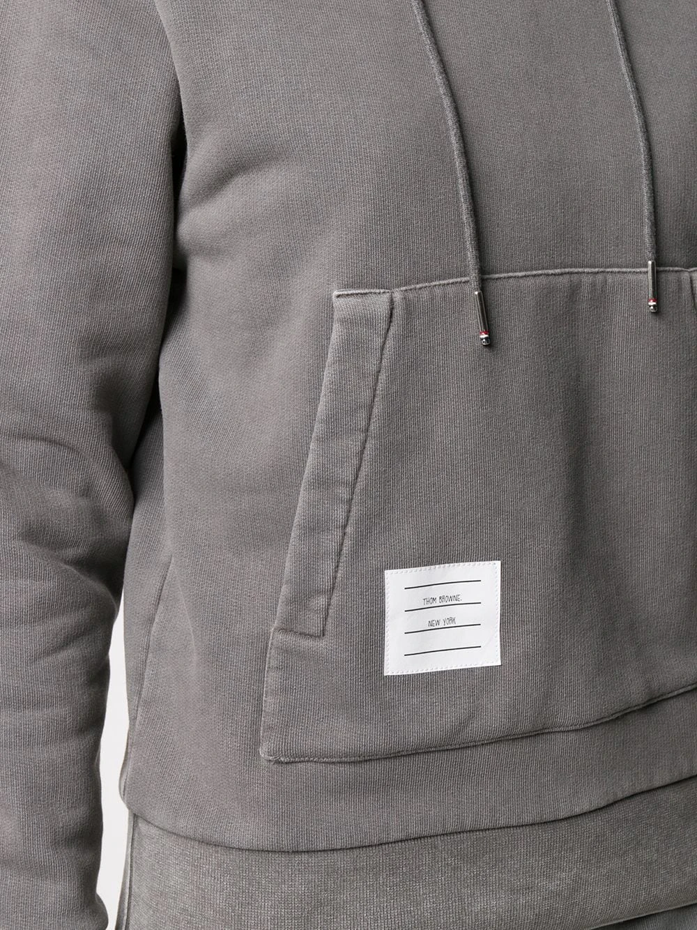 Looking for that piece that you pull on at every opportunity possible? Thom Browne has got your back…and your hoodie. This logo-patch piece puts all others in the shade. Featuring a hood with drawstring tie fastenings, a distressed detail, dropped shoulders, long sleeves, a relaxed fit, an open front pocket, a front logo patch and a ribbed hem and cuffs.
