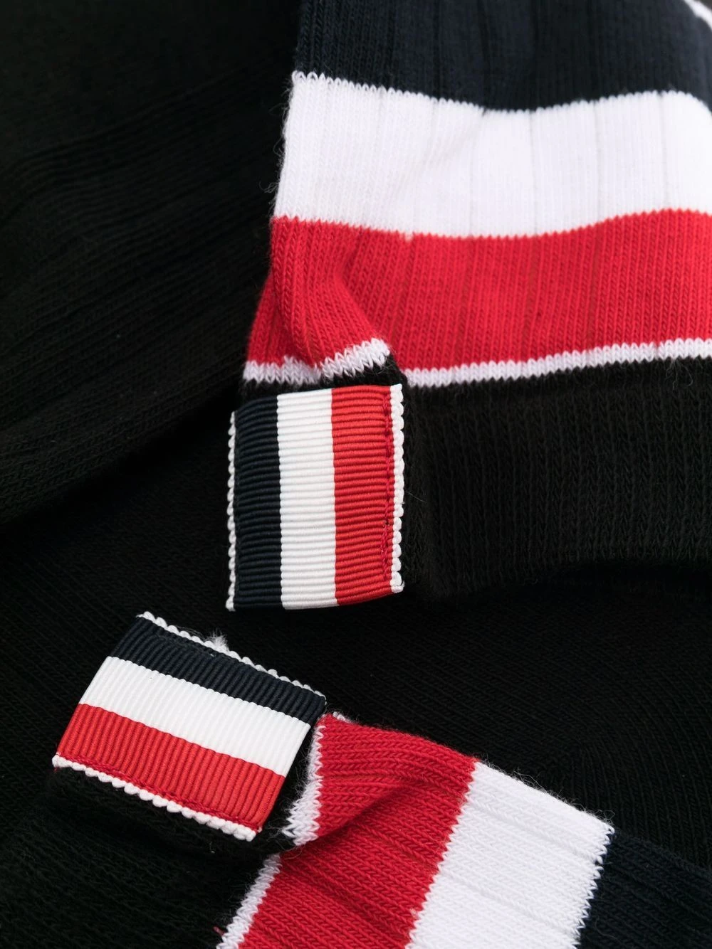 Thom Browne’s iconic RWB stripe takes the focus on these ankle socks. This signature style is combined with comfort thanks to the pair’s stretch-cotton construction.