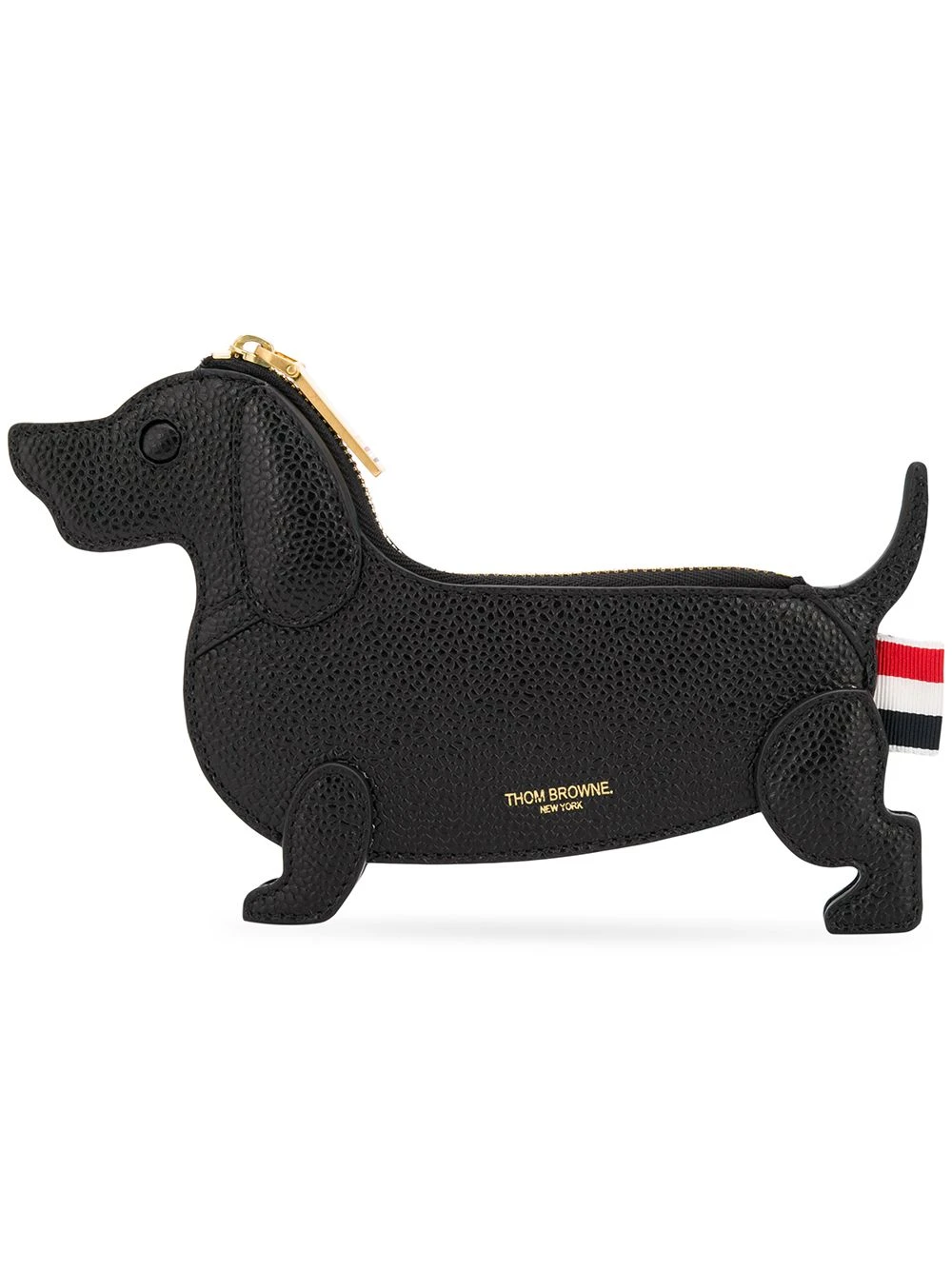 Since its launch in 2003, Thom Browne’s namesake label has gained notoriety for its clean designs and use of luxury materials. This black leather pebbled leather Hector belt purse from Thom Browne features gold-tone hardware, a top zip closure, a wristlet strap, a keyring strap detail, a striped lining and a signature tri-stripe grosgrain logo tab.