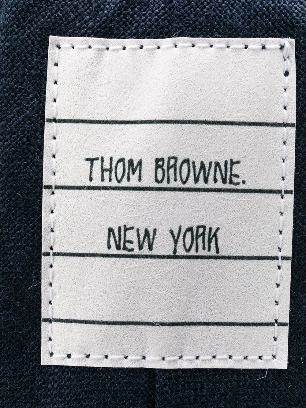 Thom Browne’s newest edit captures the immaculate craftsmanship and minimalist designs that have come to define the American label, as seen with this navy blue linen tie featuring a pointed tip and an internal logo patch. POSITIVELY CONSCIOUS: At least 50% of the main material of this product meets our conscious criteria: for example, it’s either organic, recycled, upcycled, or independently recognised as being better for the environment (such as linen, ramie, Tencel, etc.).