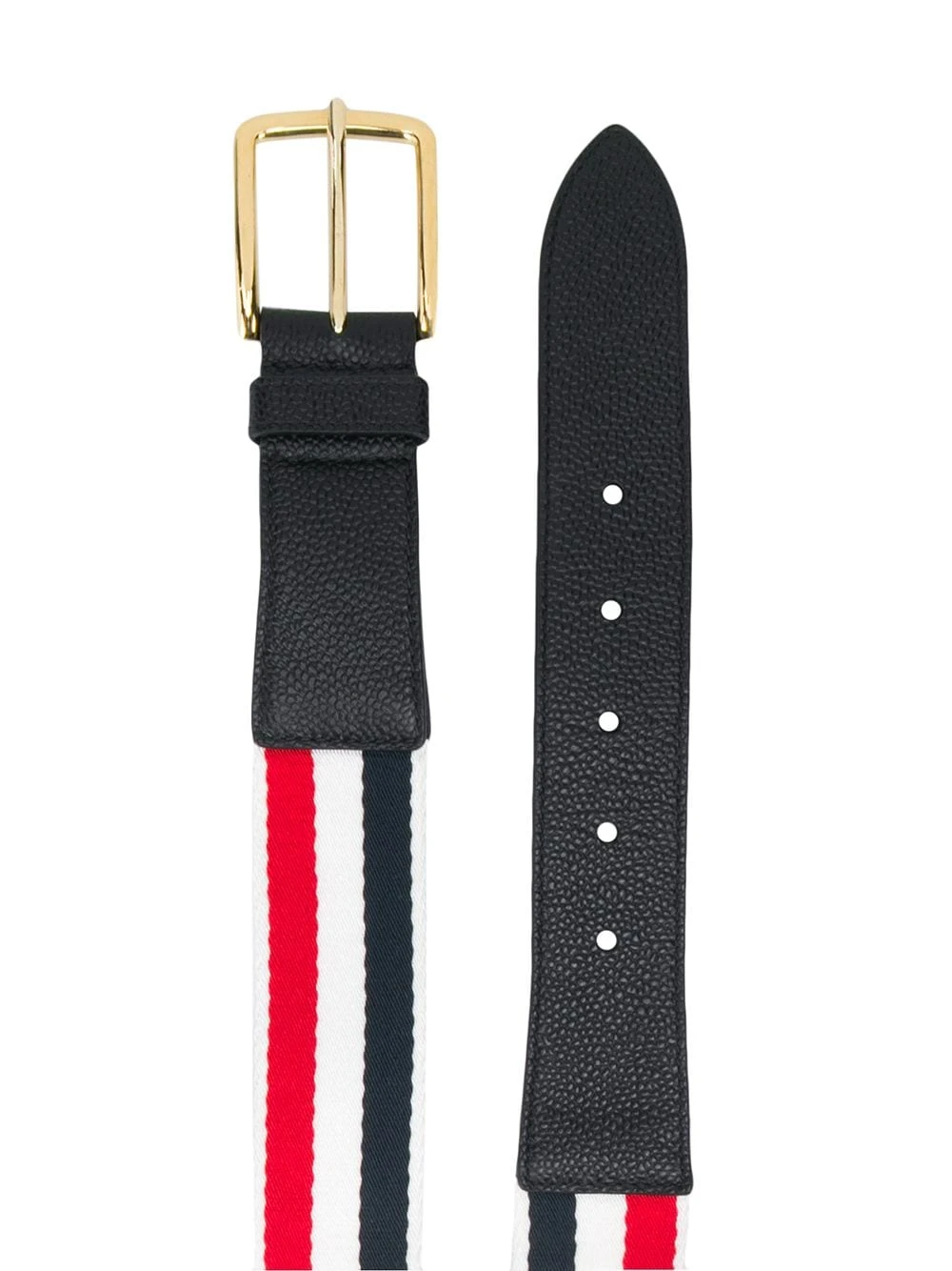 Pull your look together, literally and figuratively, with this RWB webbing pebbled leather belt from Thom Browne. It’s a home run!