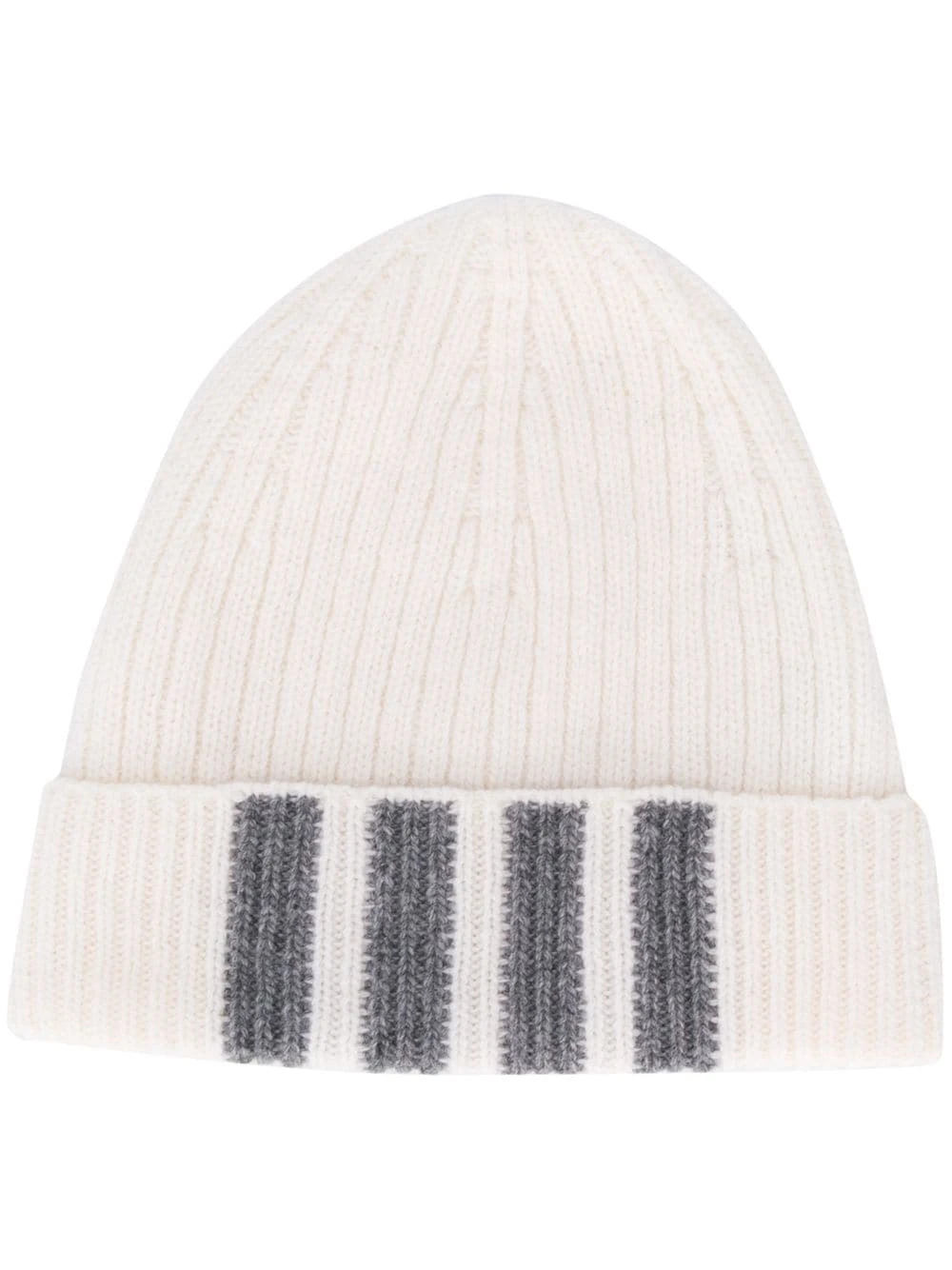 Stay warm in style. Thom Browne’s signature stripes add just the right amount of detail to this piece. Winter weather never seemed so appealing. Featuring a round body, a ribbed design, a striped pattern and a turn up style.