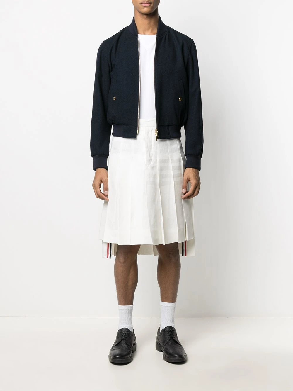 Who said men can’t wear skirts? It’s time to elevate your looks and this 4-bar knee-length pleated skirt from Thom Browne is the best way to do it. Dare to wear.