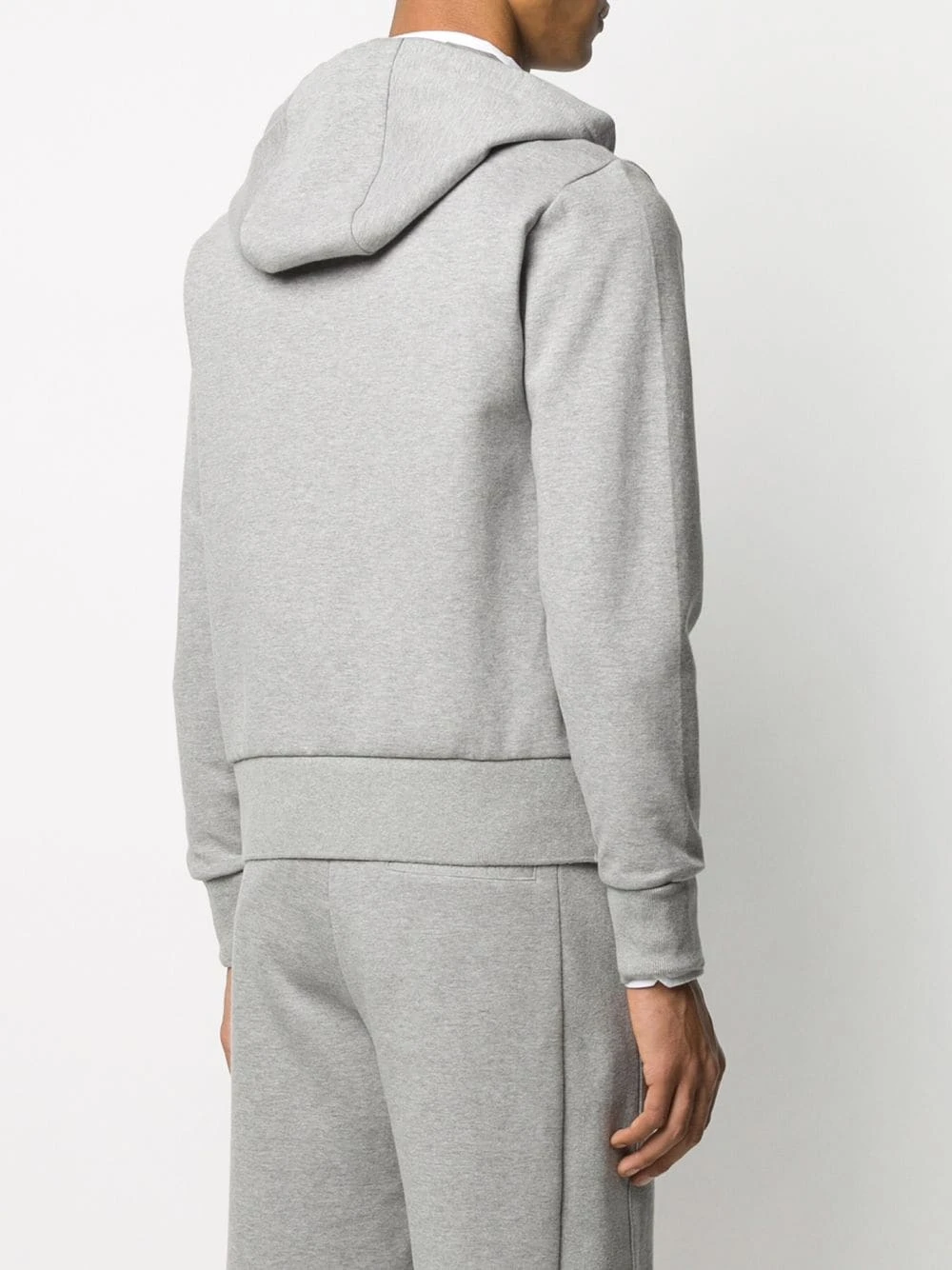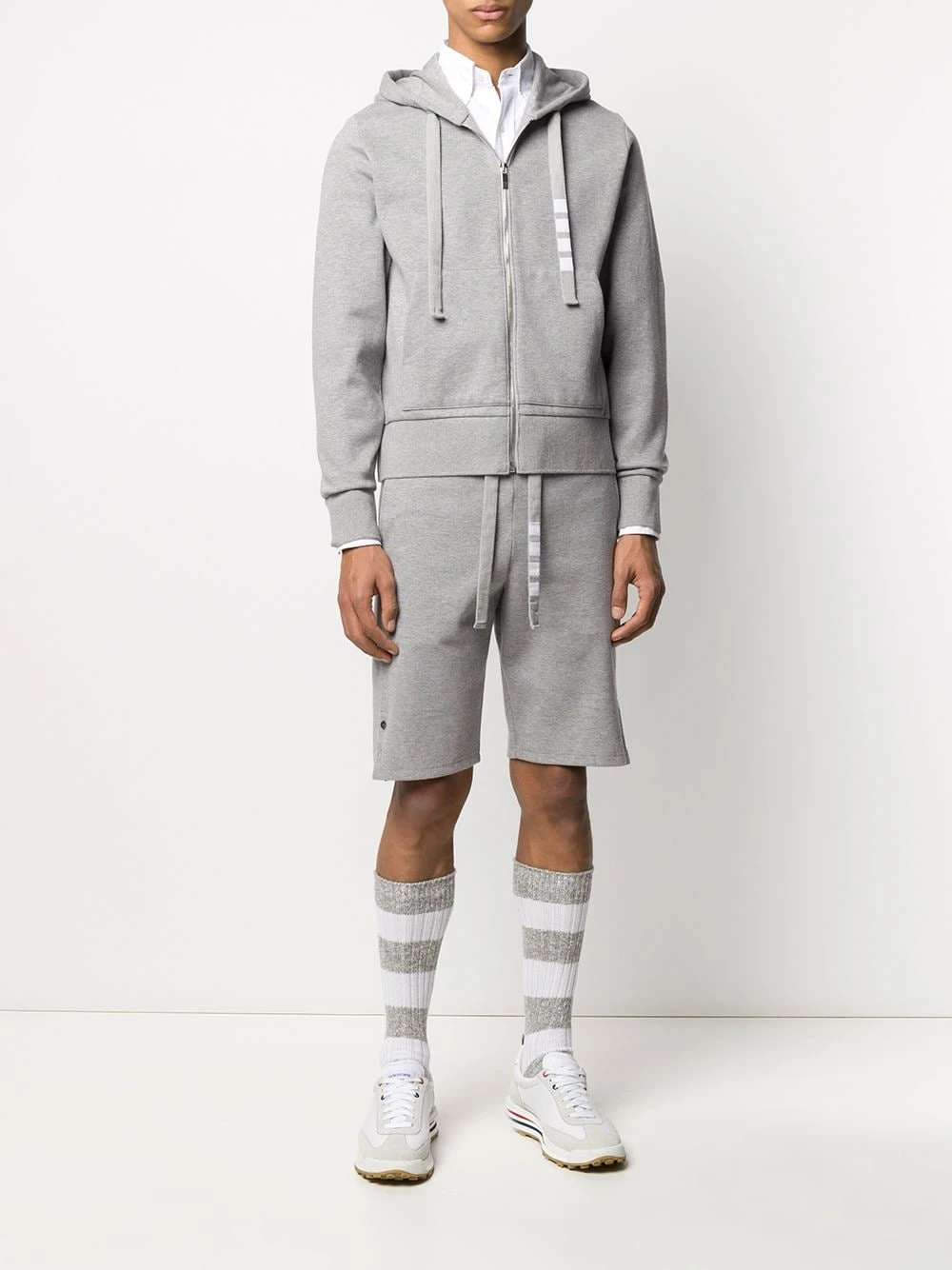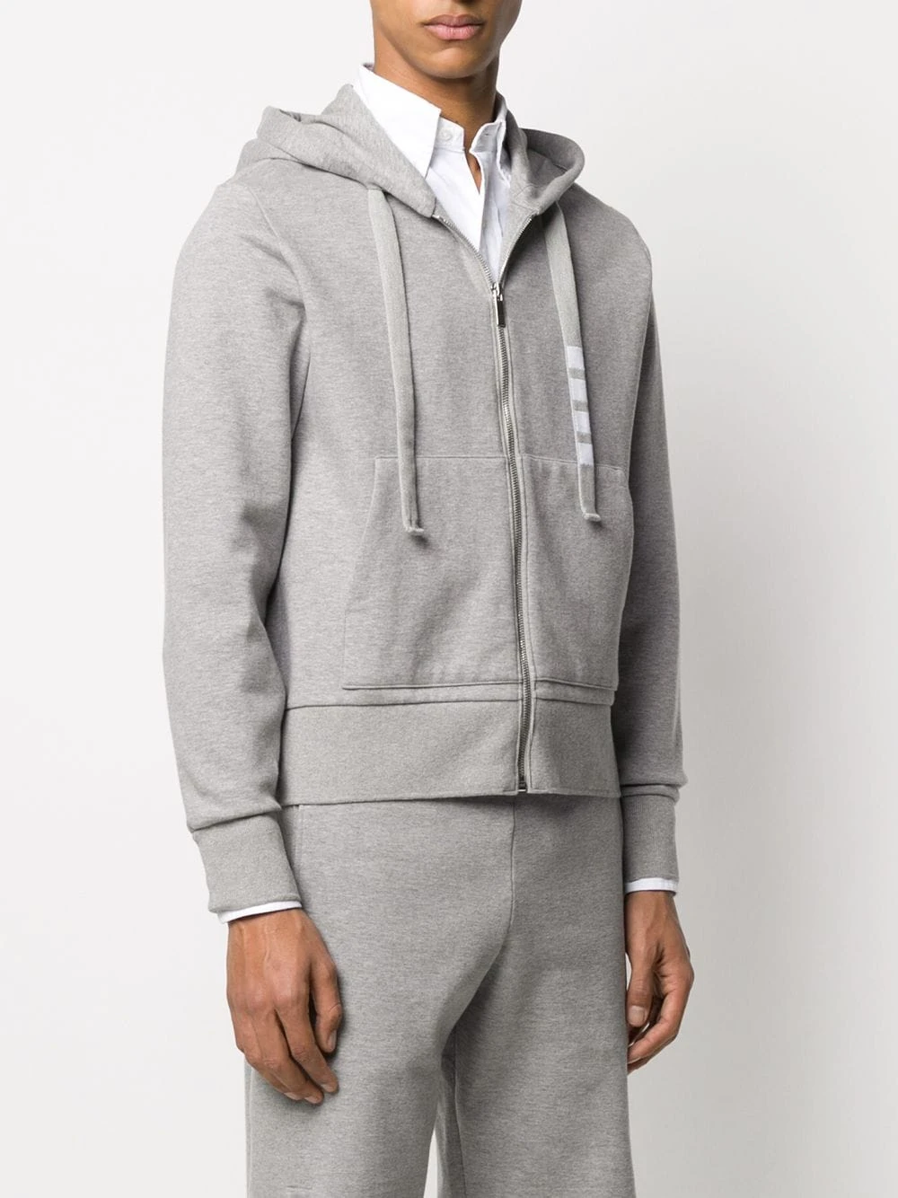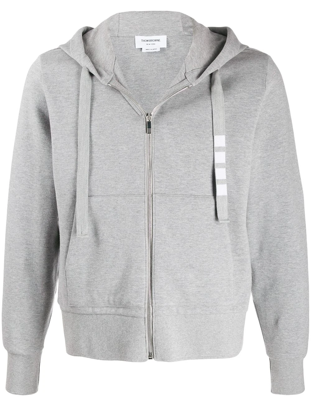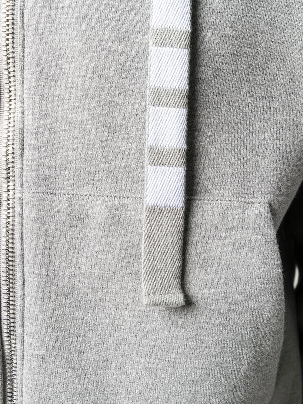 Update your sportswear with this zip hoodie from Thom Browne. Crafted in double-knit cotton, this light grey zip hoodie is detailed with a 4-Bar twill drawstring. The key is in the detail. Featuring a drawstring hood, long sleeves, a front zip fastening and a kangaroo pocket.