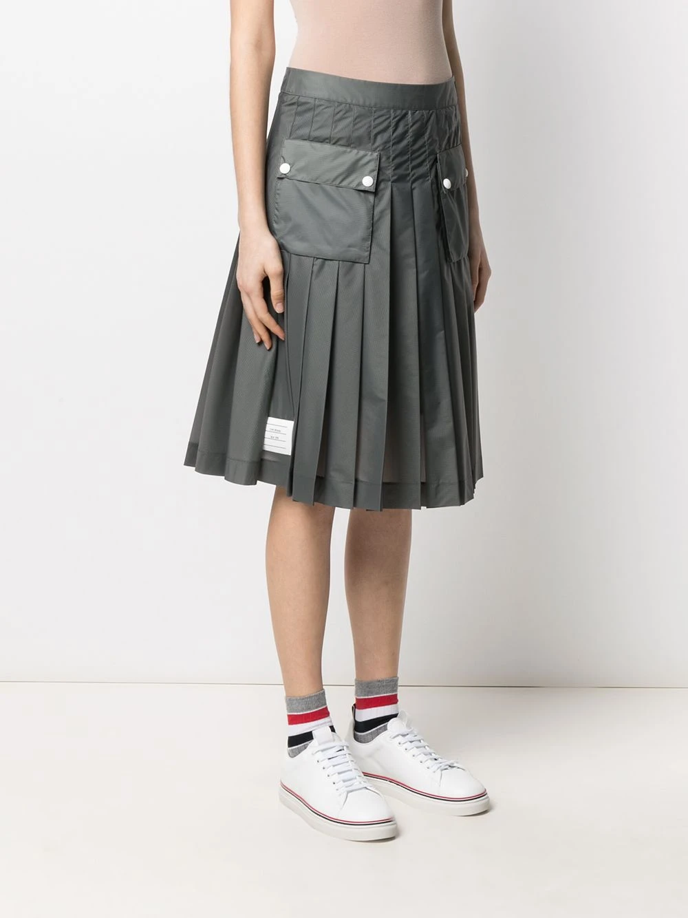 There’s nothing like a perfectly pleated skirt to make it look like you’re put together, right? Well, even if you’re not at all (like most of us), it’s worth giving this mid-length grey one by Thom Browne a go. Your boss is already convinced.