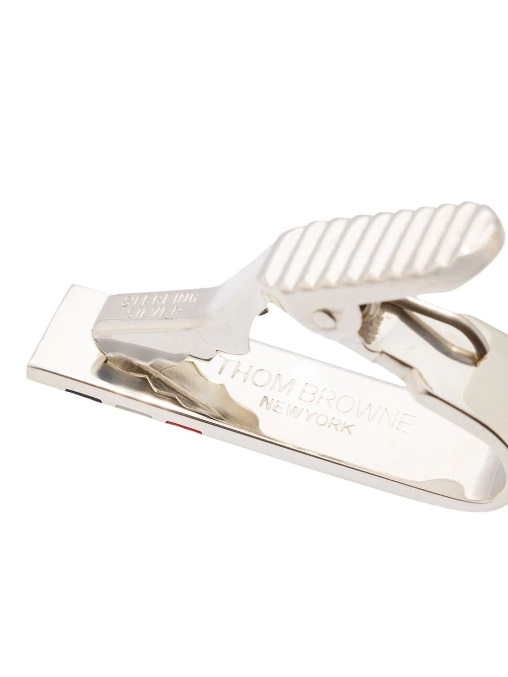 A wardrobe of reimagined – but never boring – classics, Thom Browne’s most recent collection takes uniform dressing to chic new heights, as seen in this silver-tone RWB Short Silver Tie Bar. Featuring enamel details and signature tricolour striped details.
